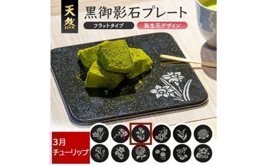 - 天然黒御影石 フラットプレート 1枚 【誕生花彫刻(3月チューリップ)】 SE0271