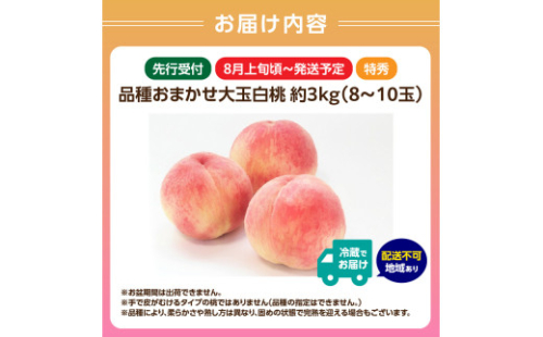 《先行受付》品種おまかせ 大玉白桃 約3kg【特秀】 (8~10玉)【2026年8月上旬頃~9月中旬発送予定】 【001-100】