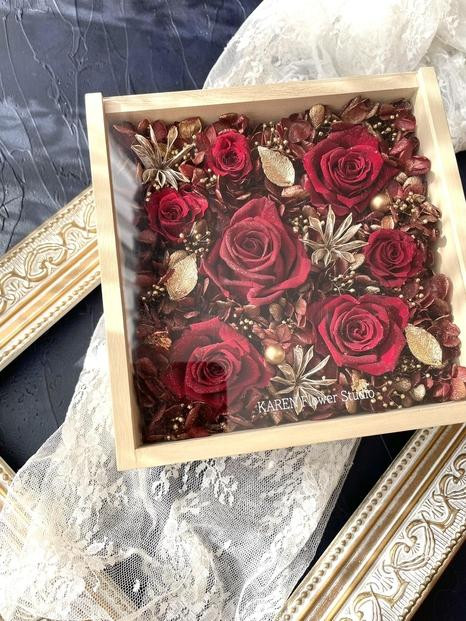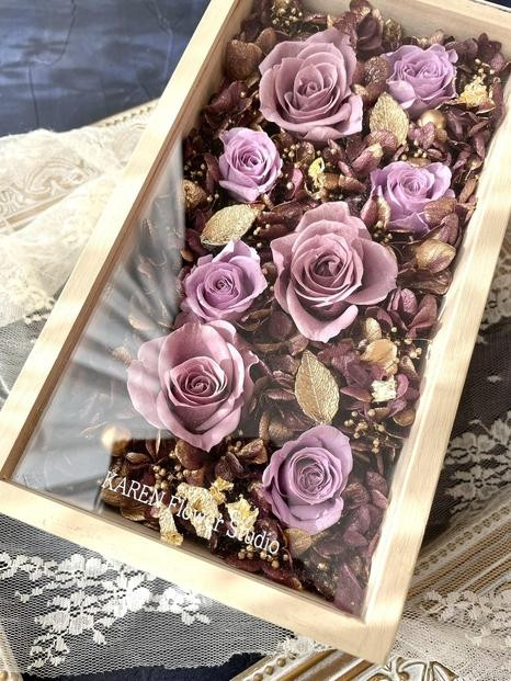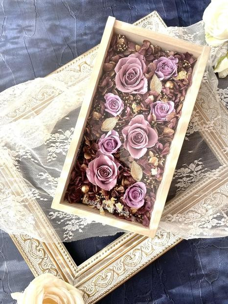 プリザーブドフラワー アレンジ ホワイトウッドフレーム ケース付き パープル インテリア 花