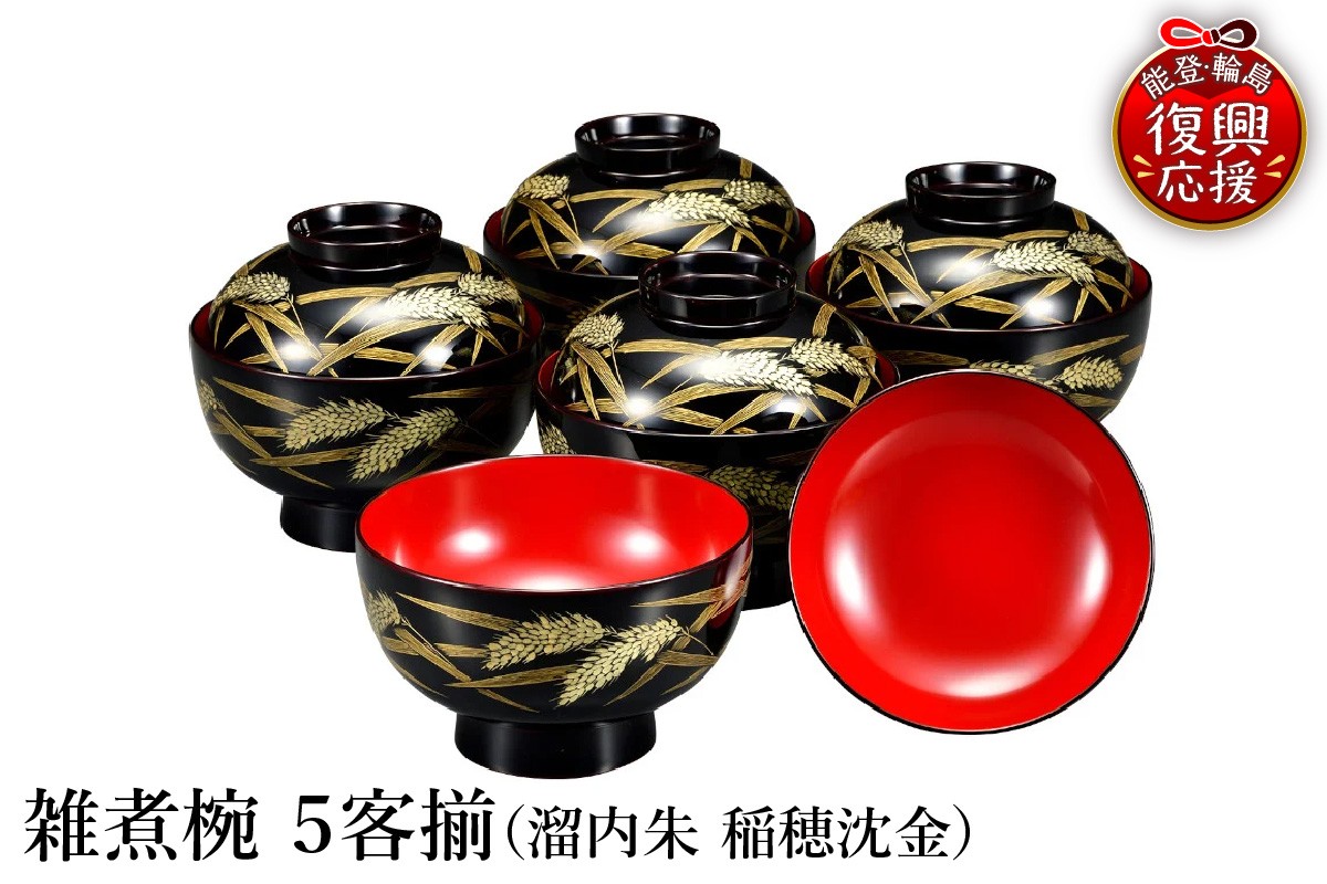 輪島塗 雑煮椀 5客揃(溜内朱 稲穂沈金)