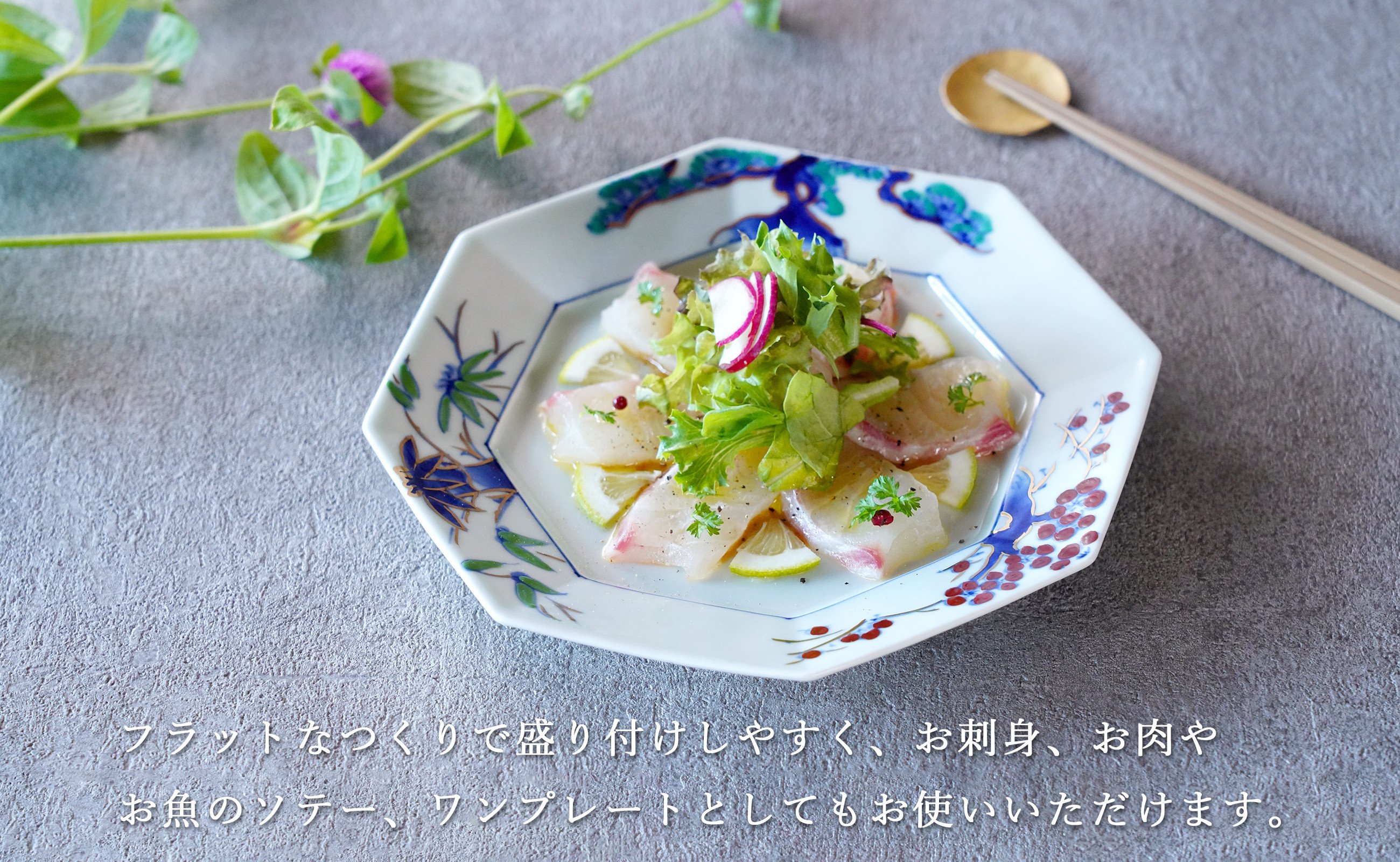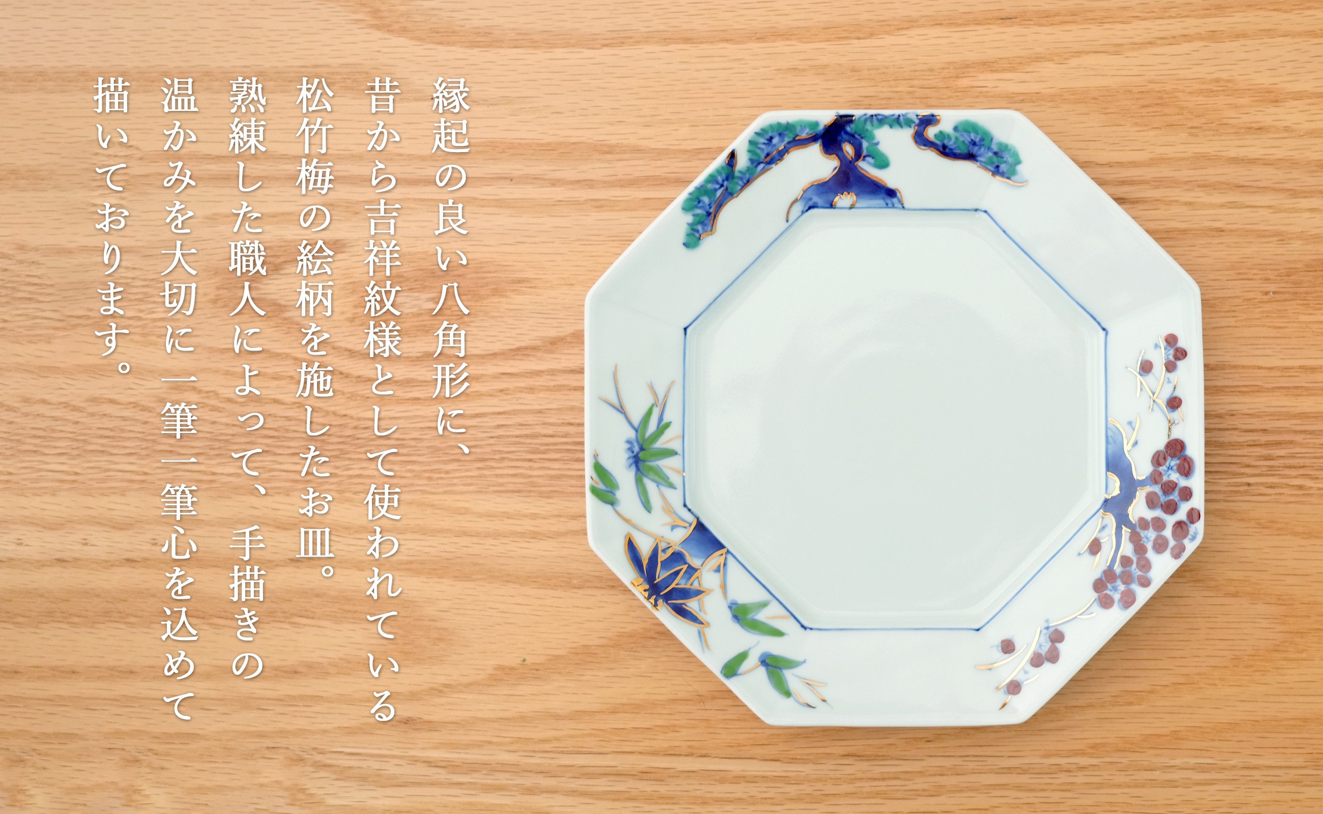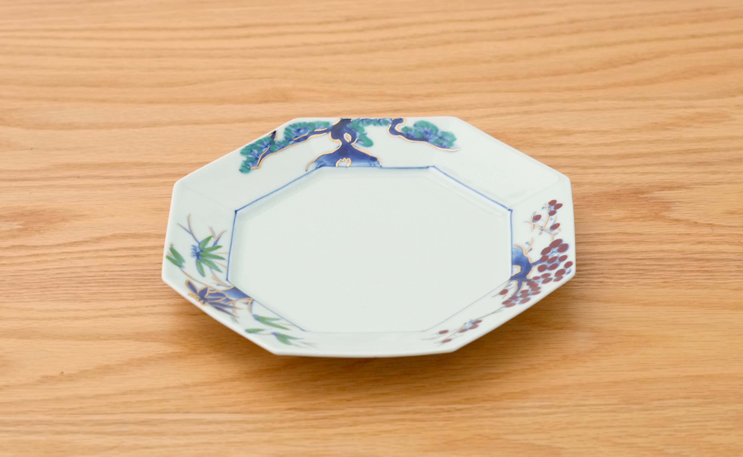 - 有田焼 八角プレート松竹梅 1枚【皓洋窯】食器 器 うつわ お正月 おせち ワンプレート ハレの日 赤絵 手描き 縁起柄 A24-126
