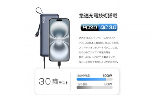 - 【2025年最新作】 モバイルバッテリー 26800mAh/99.16Wh 大容量 USB-A出力 Type-C出力/入力 ケーブル不要 3台同時充電 PD 100W急速充電 ノートPC充電 互換性抜群 LEDデジタル残電量表示 iPhone16 15充電 安全保護機能搭載 防災グッズ PSE認証済【PL保険加入済み製品・安心】