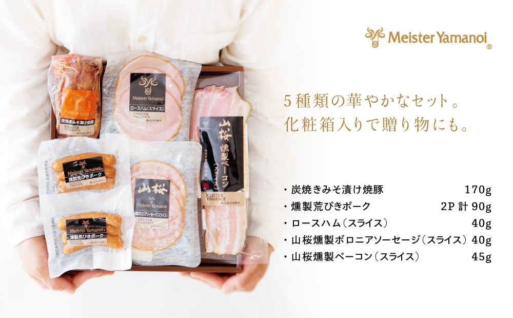 - 【年内お届け】マイスター山野井 炭焼き焼豚とハムの詰め合わせ(5種)★まだ間に合う!年内お届け★ チャーシュー 焼き豚 ロースハム 燻製荒びきポーク オードブル 惣菜 おかず おせち パーティー セット 詰合せ 詰め合わせ 冷蔵 南さつま市