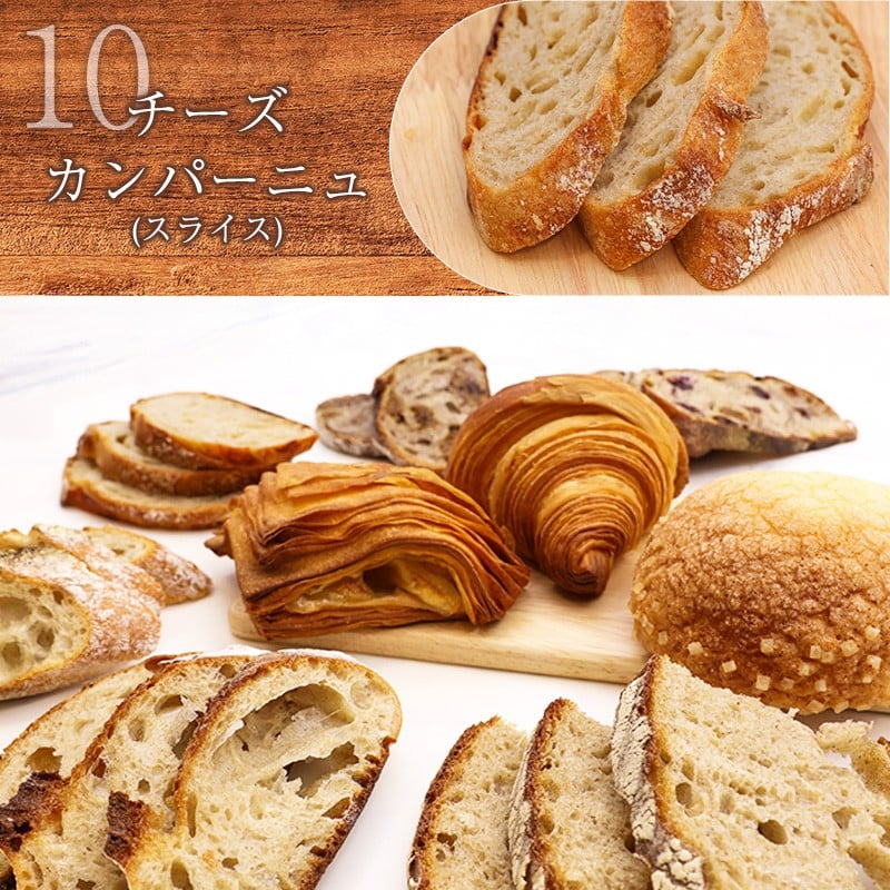 - 山形県産小麦 10種 パン 詰め合わせ ( メロンパン クロワッサン リンゴパイ ふすまバターロール カンパーニュ 甘酒バタール いちじくとくるみ 3種のフルーツ バゲット チーズカンパーニュ ) 008-G-PH001