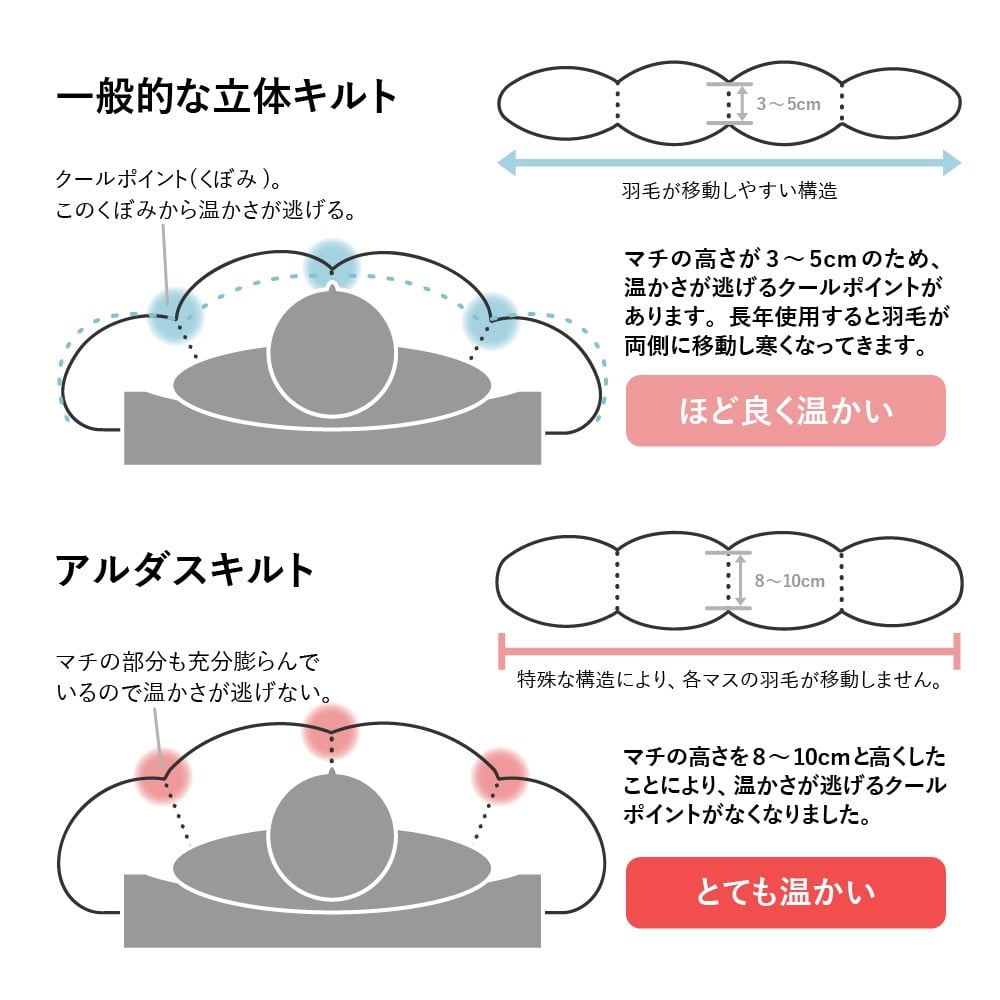 - 羽毛移動防止特殊構造 羽毛増量タイプ掛け布団 350dp シングル カラーが選べる ピンク ブルー オフホワイト
