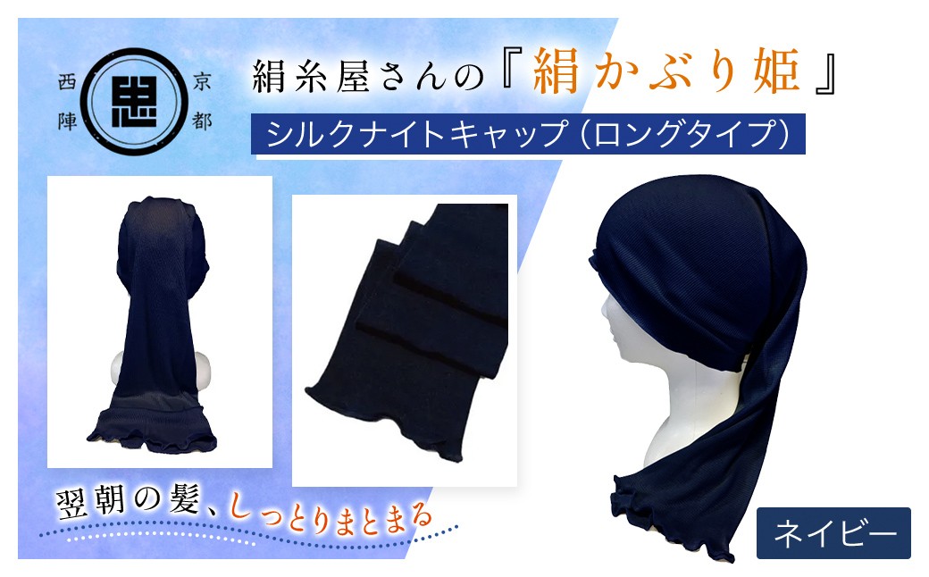 - 【選べる3色】京都西陣の絹⽷屋さん 『絹かぶり姫。』シルクナイトキャップ(ロングタイプ) [ホワイト/ピンク/ネイビー]【 ふるさと納税 ナイトキャップ ヘアケア 摩擦 乾燥 シルク100% ギフト 洗濯可 京都 福知山 】FCFA008-v