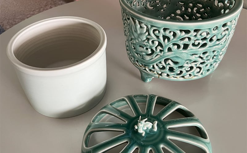 【ふるさと納税】 三田青磁 伊藤瑞宝作 雨龍透香炉 ( サイズ : 径24.5×高さ25.5cm 木箱入り ) 伝統 職人 工芸品 青磁 陶器 インテリア 仏具 アジアン お香 お香立て 線香 お線香立て アロマポット 焼き物 ふるさと 送料無料 兵庫県 三田市 [3d28bae510000]