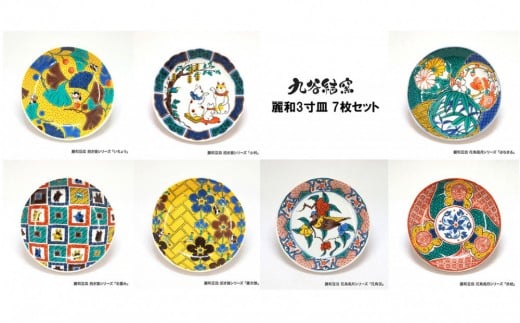 - 九谷焼 九谷結窯オリジナル 3寸豆皿 7点セット 麗和シリーズ