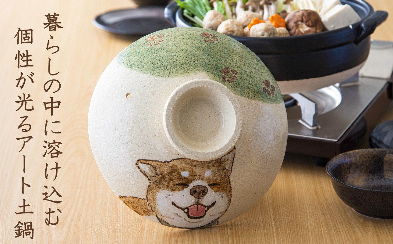 - 【萬古焼】暮らしの美術品 絵付けアーティストの個性が光るHandmade土鍋。絵付けART工房・平尾製陶 土鍋「しあわせワンコ柴犬」【萬古焼、手描き、土鍋、ハンドメイド、アート、デザイン、鍋、 家庭用、3人用、4人用、3人前、4人前、5人用、5人前、家族、冬、煮込み、手芸、工芸、三重県、四日市市、ふるさと納税】