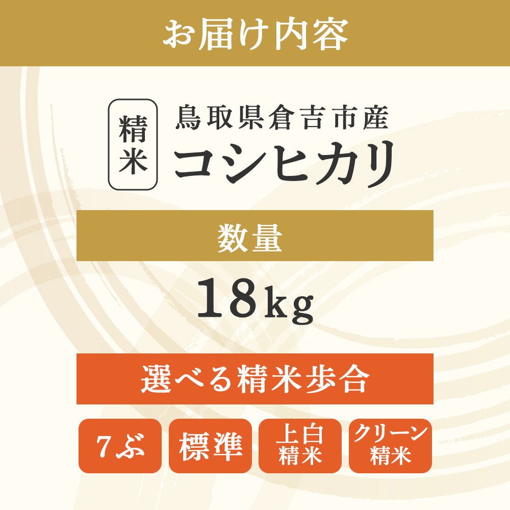 コシヒカリ 選べる精米歩合 18kg 令和7年産 新米 お米 米 こめ コメ こしひかり コシヒカリ ご飯 ごはん 鳥取県 倉吉市産