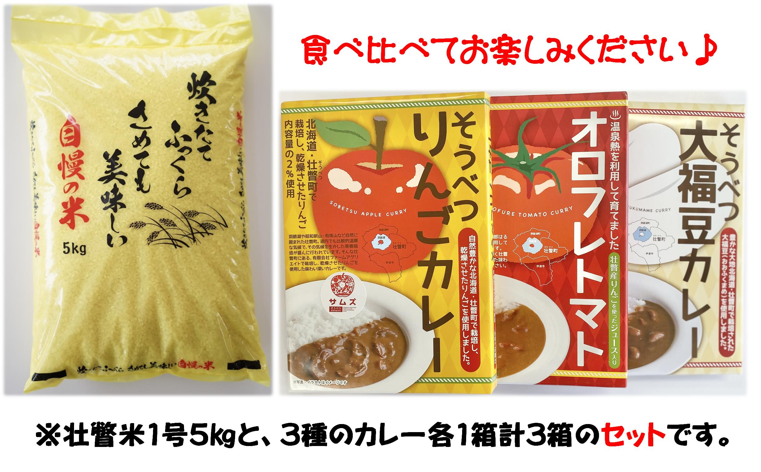北海道壮瞥産 お米とレトルトカレー3種セット ふるさと納税 人気 おすすめ ランキング 北海道 壮瞥 米 レトルトカレー リンゴ 林檎 アップル 白米 大福豆 贈り物 贈物 贈答 ギフト 大容量 詰合せ セット 北海道 壮瞥町 送料無料 SBTA047
