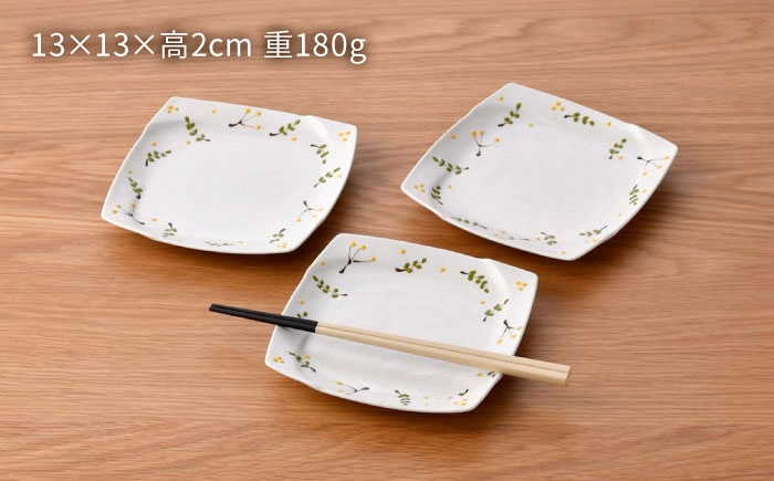 【波佐見焼】リトルリーフ 角銘々皿 3枚 セット【陶豊】 [OE28]