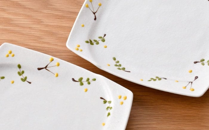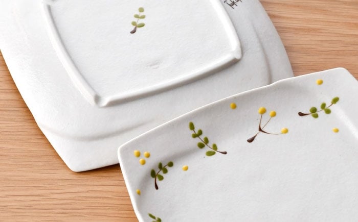 - 【波佐見焼】リトルリーフ 角銘々皿 3枚 セット【陶豊】 [OE28]