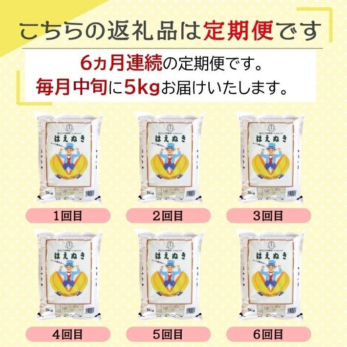 <12月中旬発送>庄内米6か月定期便!はえぬき 6kg(入金期限:2025.11.25)