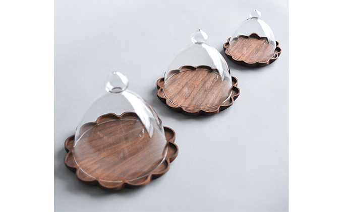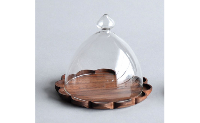 - 【YARN】かろやかなガラスドームとウォールナットのトレー【L 単品】|日用品 工芸品 スタッキング可能 ※離島への配送不可