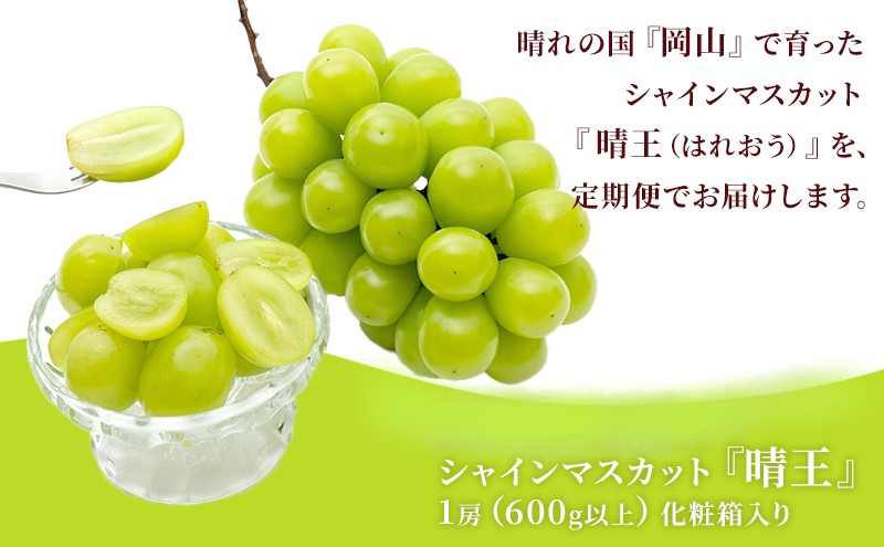 ぶどう 2026年 先行予約 晴れの国 岡山の シャイン マスカット 晴王 定期便 2回(各1房600g以上) 葡萄 岡山県産 国産 フルーツ ギフト 大粒 種なし 甘みが強い 皮ごと食べられる
