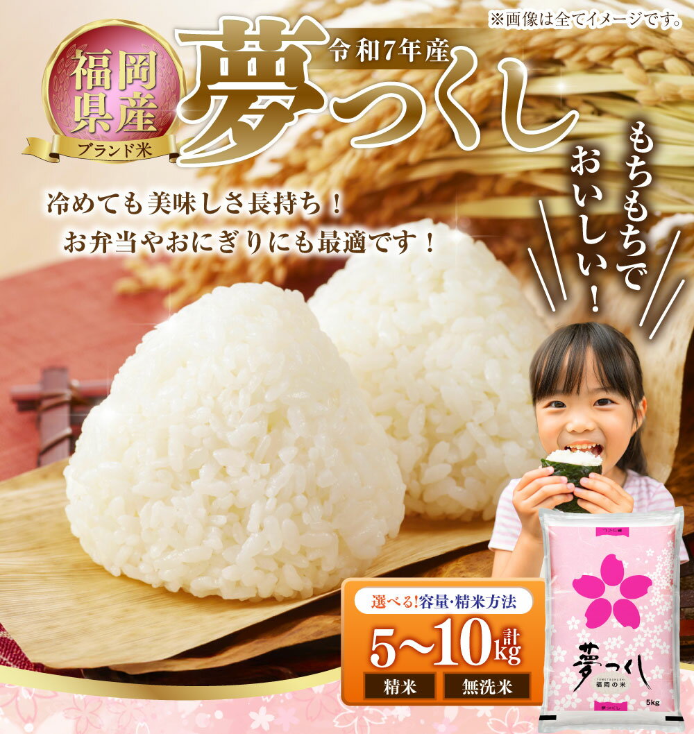 - 【ふるさと納税】【選べる種類】 【選べる容量】 【令和7年産】 福岡県産 夢つくし (精米 / 無洗米) (5kg / 10kg) ゆめつくし お米 米 白米 ご飯 ブランド米 ごはん 飯 食品 九州 福岡県 岡垣町 送料無料