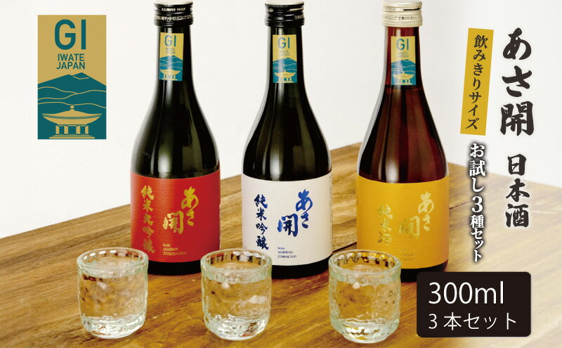 - 【ふるさと納税】日本酒 お試し 飲み比べ 3種 各 300ml セット あさ開 お酒 酒 アルコール 晩酌 純米大吟醸 純米吟醸 純米酒 純米 大吟醸 吟醸酒 飲み比べセット 日本酒飲み比べ 詰め合わせ ギフト箱 ギフト プレゼント 贈答 贈答品 岩手 岩手県 盛岡 盛岡市