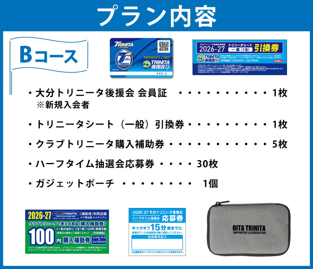 - 【ふるさと納税】2026/27年度大分トリニータ後援会 Bコース 会員証 ガジェットポーチ 引換券 割引券 抽選応募券 サッカー 応援 グッズ 大分県 送料無料