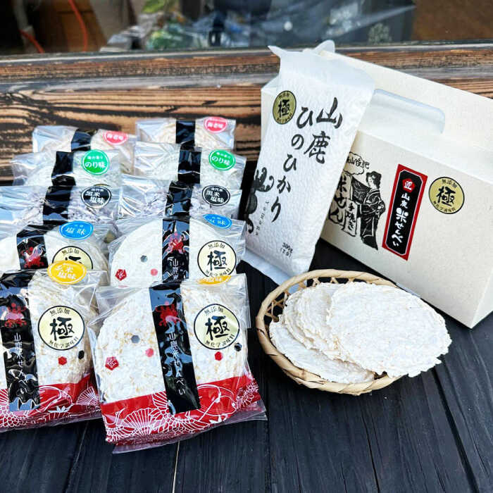- 【ふるさと納税】【12回定期便】【極み】米せんべい(えび味、のり味、元祖塩味、玄米塩味、黒米塩味) & ヒノヒカリ【せんべい工房】[ZBQ013]
