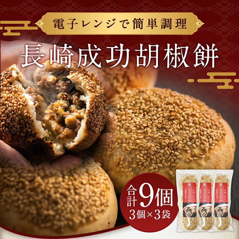 【ふるさと納税】長崎成功胡椒餅 3個×3袋 ( 合計9個 1個約130g ) 点心 胡椒餅 長崎 長崎市 長崎中華街 中華 雲仙うまか豚紅葉 簡単調理 グルメ お取り寄せ 冷凍 長崎市