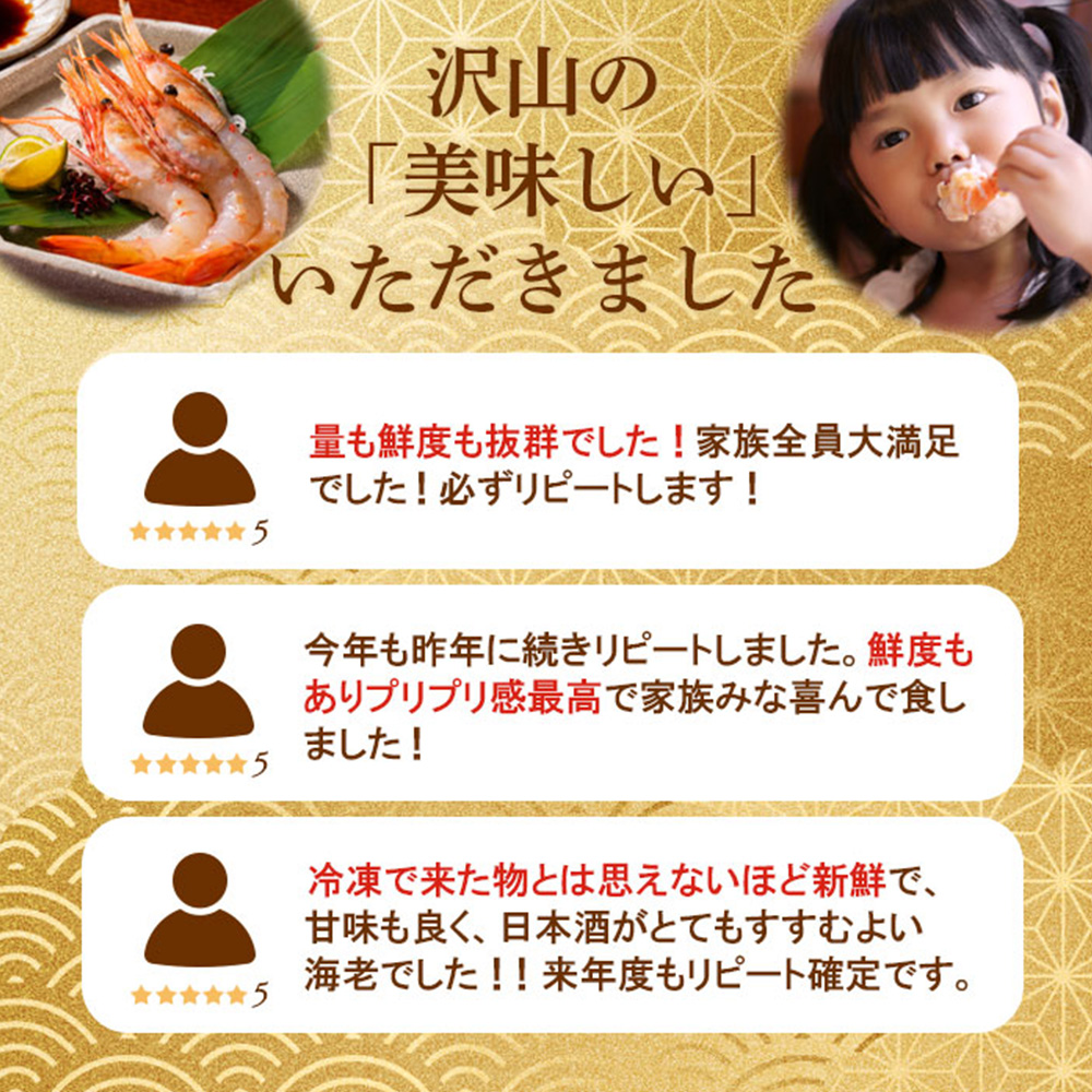 【年3回お届け】甘えび 約1.1㎏ × 3回 合計3.3㎏ 天然・鮮度抜群! 漁船直送! 「共栄丸」 絶品甘海老をお届け!【甘海老 甘エビ あまえび アマエビ エビ 刺身 冷凍 産地直送】 [D-2303]
