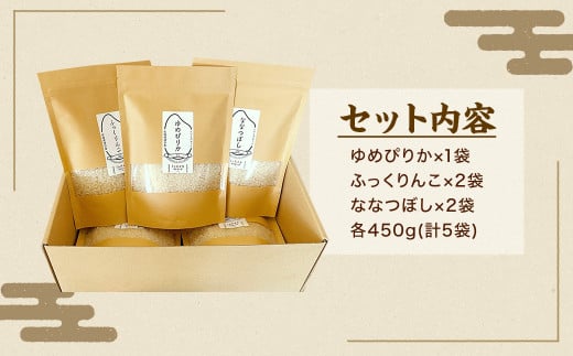 - 【 令和7年産 】北海道 浦臼産米 ~ 3種 たべくらべ セット ~ 450g×5袋 合計2.25kg | 米 お米 こめ ブランド米 ごはん 白米 精米 北海道