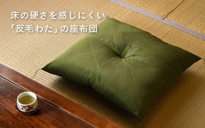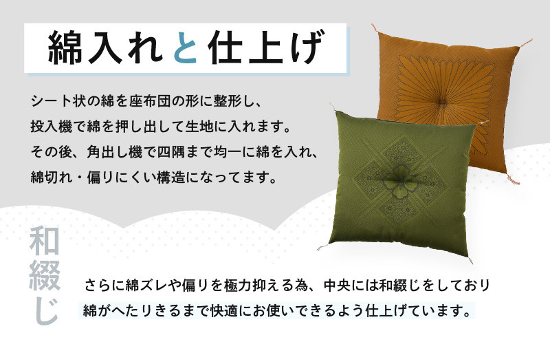 - 床の硬さを感じにくい「反毛わた」 座布団(八端判59cm×63cm)4枚組【選べる柄:フクレハイウェイ/一本菊】【選べるカラー:グリーン/ゴールド】 [B-20412]