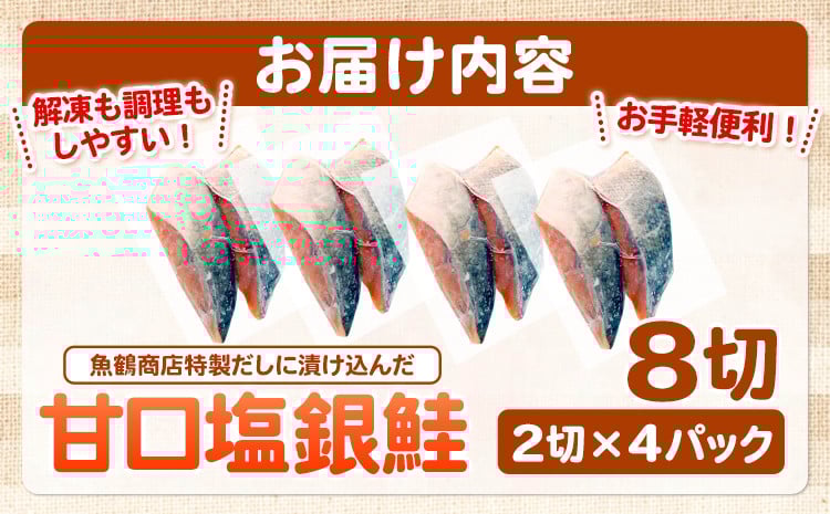 和歌山魚鶴仕込の 甘口塩銀鮭切身 8切(2切×4パック) 小分け 魚鶴商店《90日以内に出荷予定(土日祝除く)》和歌山県 日高町 甘口塩銀鮭 銀鮭 鮭 さけ 切り身
