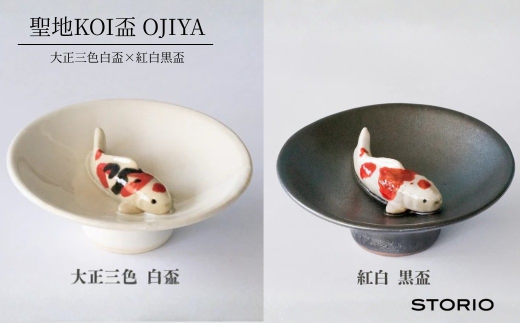 聖地KOI盃 OJIYA/大正三色白盃×紅白黒盃 ストーリオ | 盃 錦鯉柄 グイ呑み グラス 日本酒用 贈答 ギフト プレゼント 父の日 新潟県 小千谷市 【0005-0018-01】