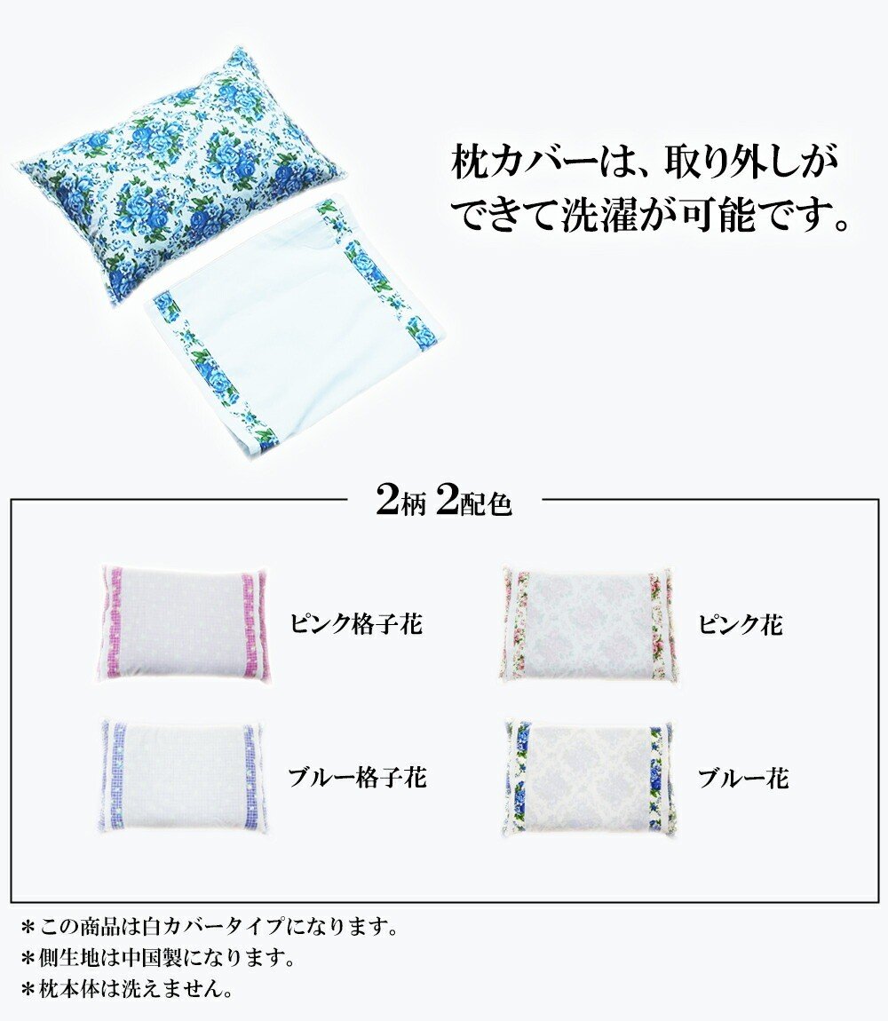 - 枕 そば殻枕 白 30×50 cm ピンク格子花 ブルー格子花 ピンク花 ブルー花 ピロー 健康 ギフト プレゼント 贈り物 贈答品 大阪府 松原市