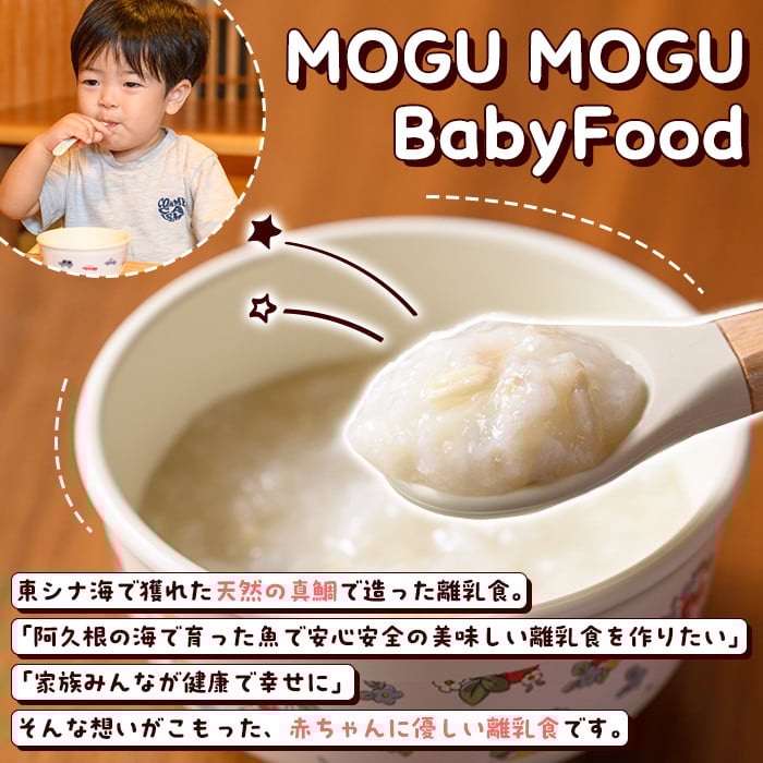 - <内容量が選べる!>鯛の離乳食!MOGU MOGU Baby Food(80g×5~10食入) 阿久根 鯛 タイ 真鯛 海鮮 天然 離乳食 赤ちゃん 子ども ベビー用 育児 子育て 【海盛水産】