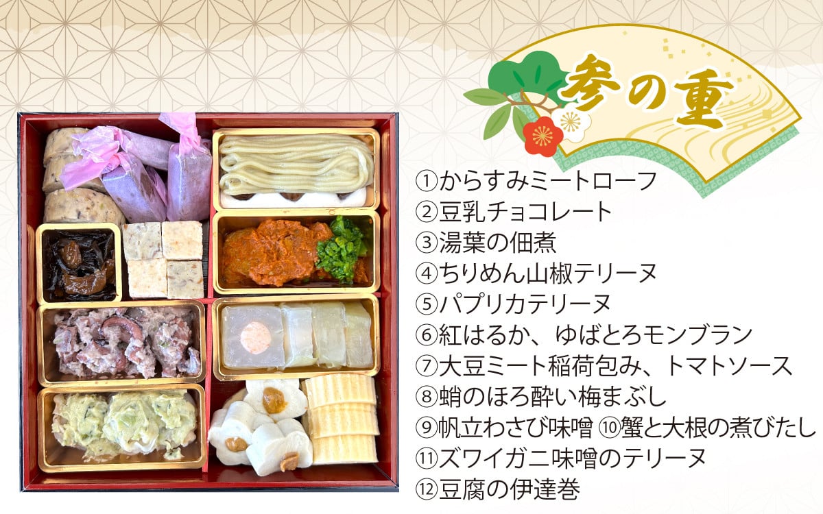 - 【先行予約】【12/25入金分まで 年内発送 年内配送 】幸家の豆腐創作おせち「麗」/ 冷凍 豆腐 ごま とうふ 胡麻 胡麻豆腐 ごま豆腐 ごまとうふ ゴマ豆腐 福井 ギフト おせち 御節 お節 おせち料理 おせち料理2026 2人前 3人前 3段重 3段 三段 三段重 和風 和風おせち 早割 [K-013001]