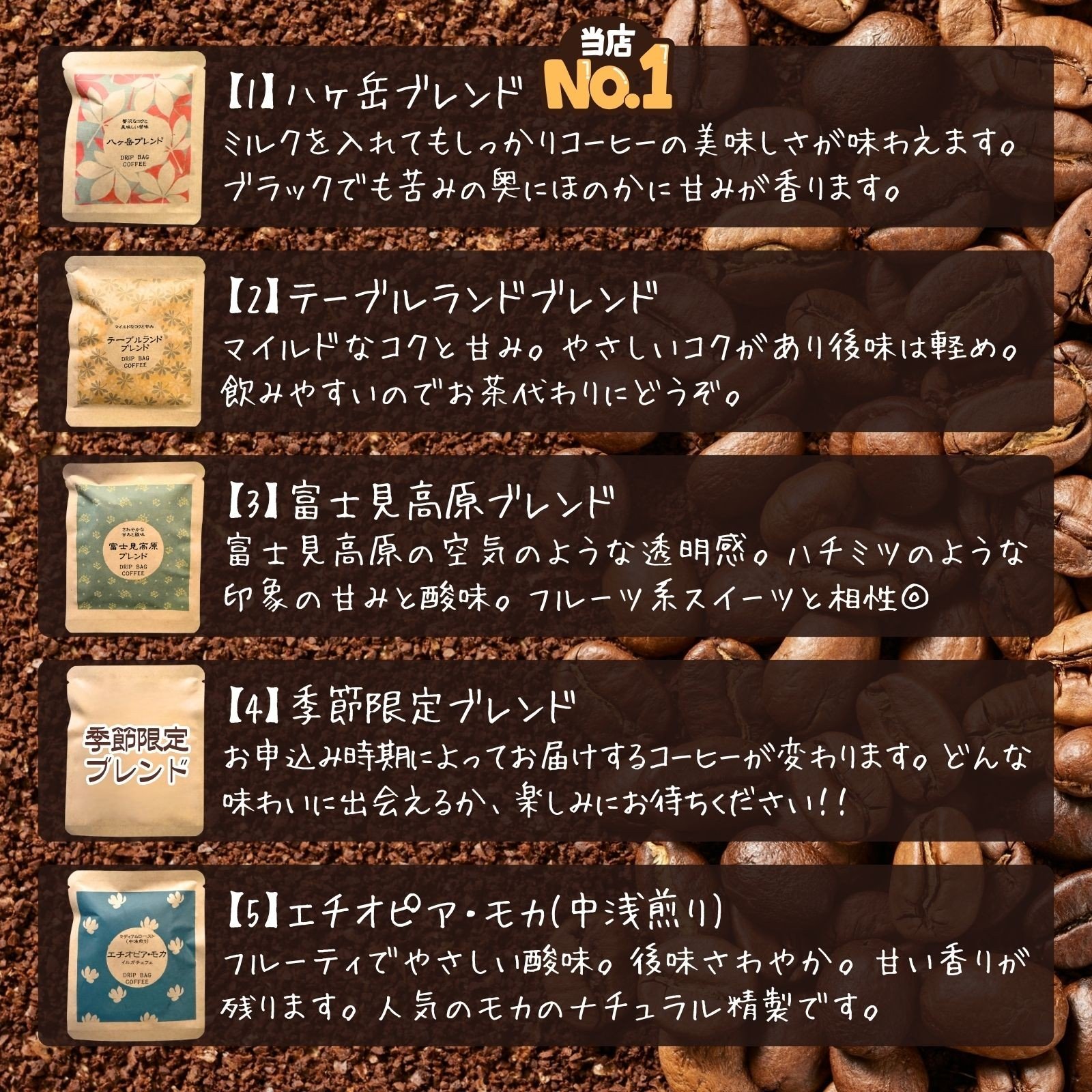 八ヶ岳からお届け 自家焙煎 ドリップバッグコーヒー 選べる数量 15個~100個入り 3種~15種 セット 飲み比べ ギフト 箱 贈答 BOX ブレンド コーヒー 珈琲 ドリップバッグ ドリップパック ドリップ 八ヶ岳珈琲工房テーブルランド テーブルランド