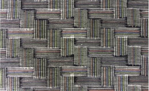 鍋島緞通 [手刺繍] 蟹牡丹縁二重雷文 灰地:C510-008