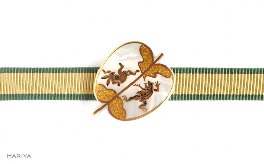 勝負蒔絵 白蝶貝帯留 鳥獣戯画 うさぎ かえる ウサギ 蛙 白蝶貝 漆塗り 漆 蒔絵 帯留 帯留め アクセサリー 和装 着物 和服 伝統工芸 工芸品 国産 日本製 復興 震災 コロナ 能登半島地震復興支援 北陸新幹線 F6P-0751
