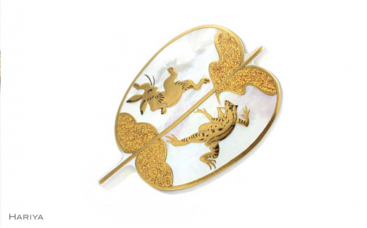 - 勝負蒔絵 白蝶貝帯留 鳥獣戯画 うさぎ かえる ウサギ 蛙 白蝶貝 漆塗り 漆 蒔絵 帯留 帯留め アクセサリー 和装 着物 和服 伝統工芸 工芸品 国産 日本製 復興 震災 コロナ 能登半島地震復興支援 北陸新幹線 F6P-0751