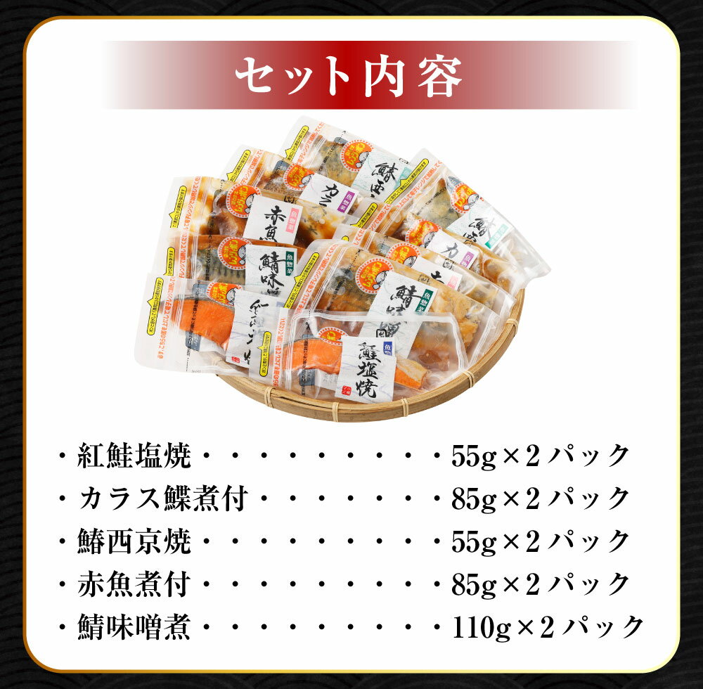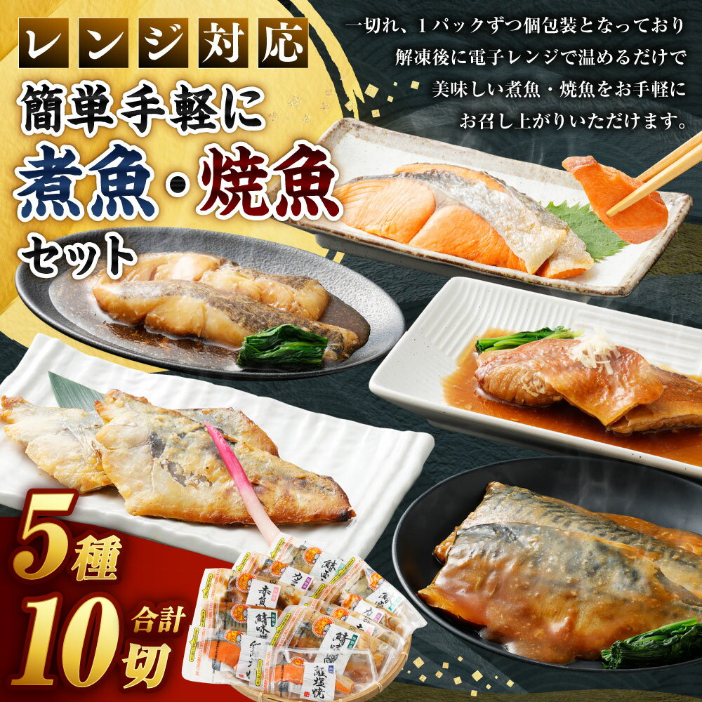 【ふるさと納税】レンジ対応 簡単・手軽に煮魚・焼魚セット 5種10パック入 (紅鮭塩焼 / カラス鰈煮付 / 鰆西京焼 / 赤魚煮付 / 鯖味噌煮) 煮魚 焼き魚 海の幸 個包装 小分け ギフト 贈り物 セット 詰め合わせ おすすめ お取り寄せ グルメ 冷凍 小樽市 北海道 送料無料