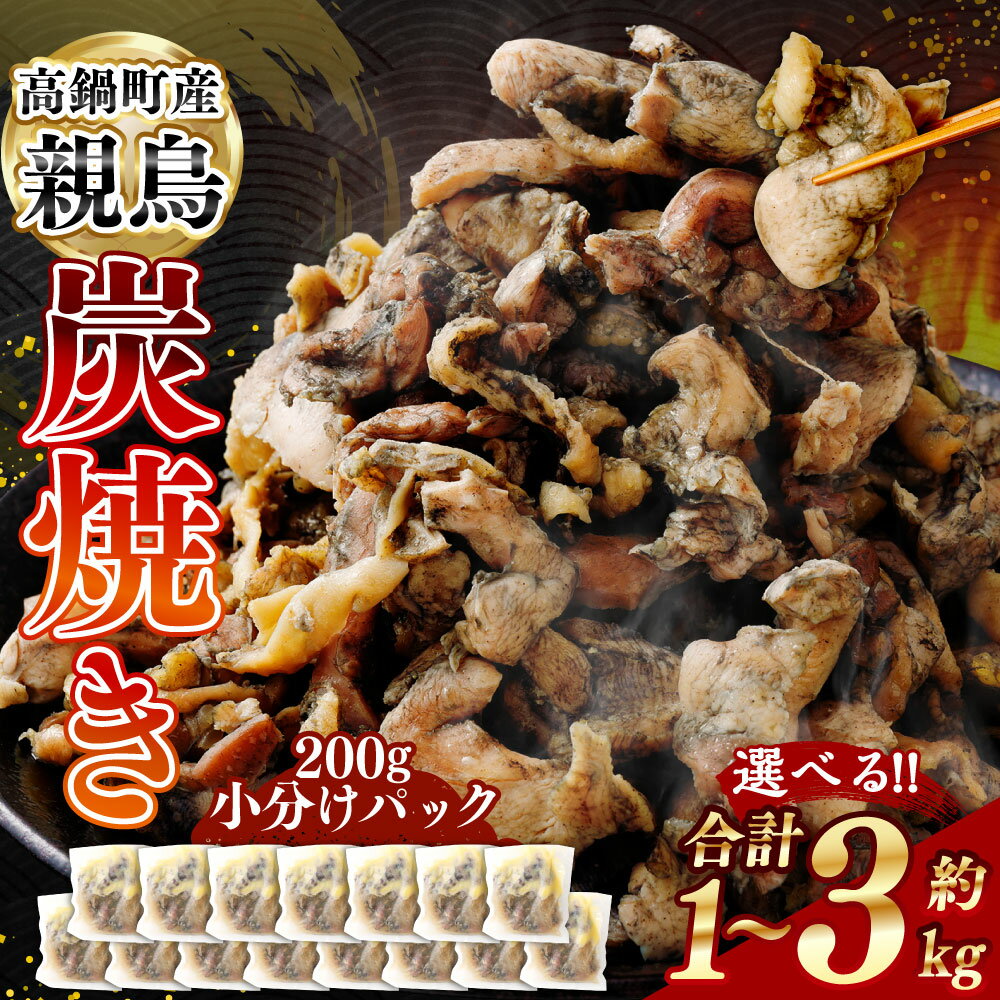 - 【ふるさと納税】【選べる容量】<親鶏炭焼き 200g×5~15パック入り>2か月以内に順次出荷 合計1~3kg 鶏肉 焼鳥 焼き鳥 お肉 肉 炭火焼風 炭焼き 炭焼 小分け 惣菜 おかず 冷凍 宮崎県 高鍋町 送料無料