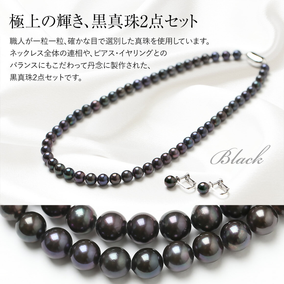 【ふるさと納税】【14営業日以内発送】あこや真珠 黒真珠 7.0~7.5mm 保証書付 ネックレス・イヤリング 2点セット アコヤ真珠 パール SV925 シルバー金具 アクセサリー ジュエリー ファッション 女性 レディース ジュエリーケース付き 冠婚葬祭 長崎県 長崎市 送料無料