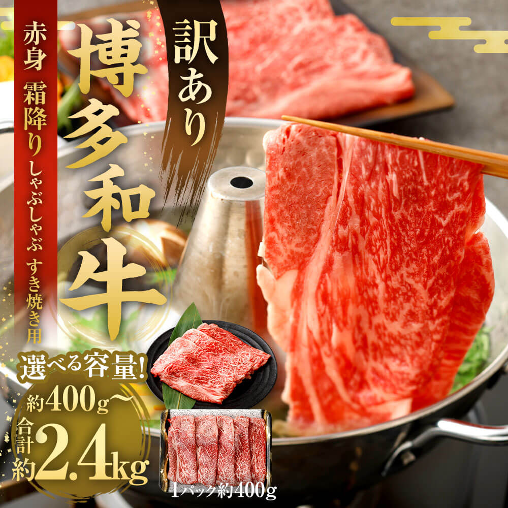 - 【ふるさと納税】<選べる 容量>【訳あり】博多和牛 赤身 霜降り しゃぶしゃぶ すき焼き用 肩・モモ 約400g~約2.4kg 1パック約400g 部位はお任せ 黒毛和牛 福岡県産 九州産 国産 国産牛 すきやき 牛肉 お肉 肉 冷凍 福岡県 大任町 送料無料