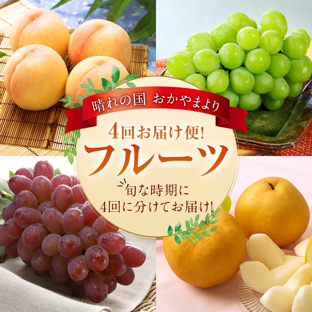 - 【ふるさと納税】【4回定期便】フルーツ 2026年 先行予約 環山堂セレクト 晴れの国おかやまより果物を旬な時期に4回に分けてお届け! 岡山白桃 マスカット 紫苑 あたご梨 もも ぶどう 葡萄 くだもの 果物 冷蔵 岡山県産 国産 送料無料 【2026年7月上旬~12月下旬 発送予定】