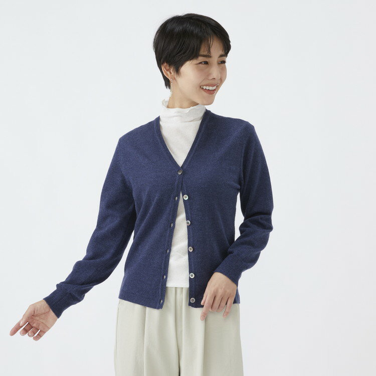 - 【ふるさと納税】【選べるサイズ】日本製 カシミヤ100% レディース Vカーディガン インディコブルー 90805