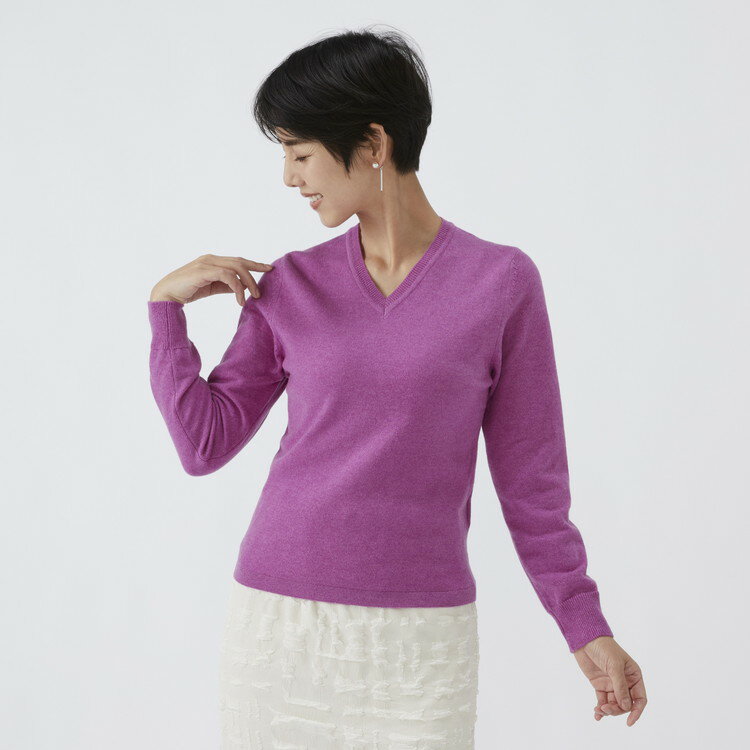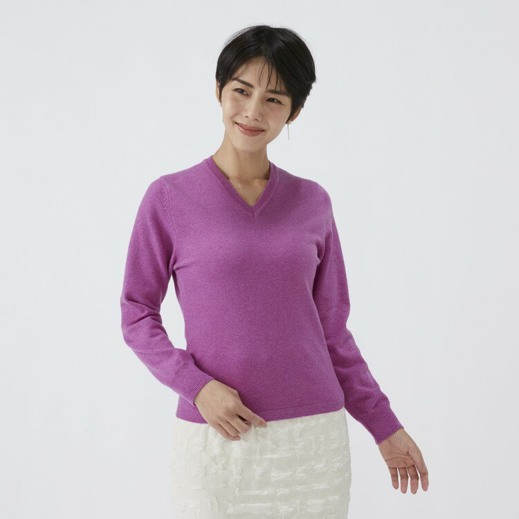 - 【ふるさと納税】【選べるサイズ】日本製 カシミヤ100% レディース Vネック パープル