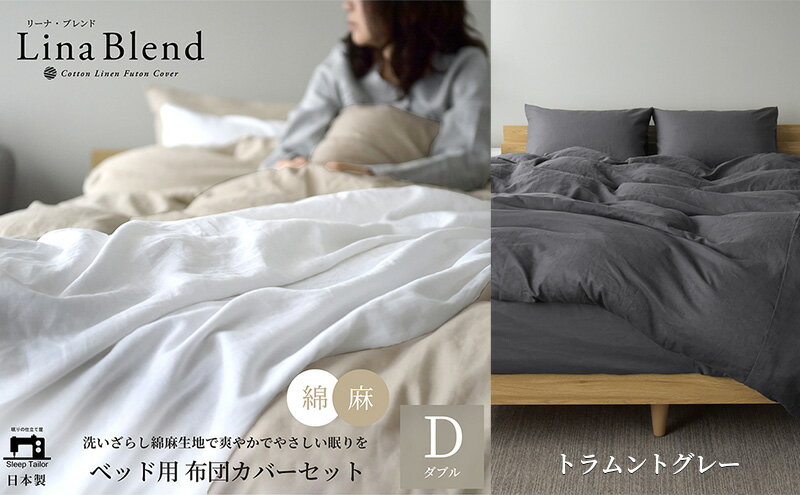 【ふるさと納税】寝具 日本製 布団カバー 4点セット ダブル リネン & コットン 麻 綿 洗いざらし トラムントグレー リーナブレンド 極上の柔らかさ 洗いざらし 肌馴染み しなやか 静岡 浜松市