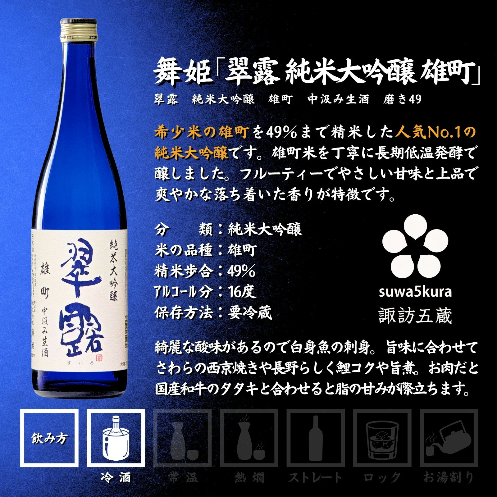 - 【ふるさと納税】信州 諏訪五蔵 純米大吟醸 日本酒 飲み比べ セット 720ml~1800ml 2本 真澄 「山花」 舞姫 「翠露 純米大吟醸 雄町 中汲み生酒」 プレゼント 贈り物 ギフト 父の日 長野県 諏訪市 【102-31 102-32】
