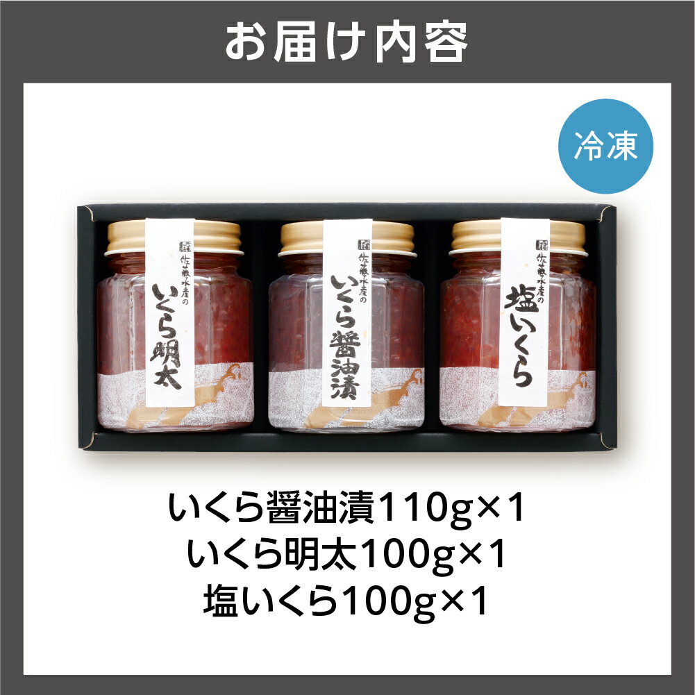 - 佐藤水産 いくら三昧(味付きいくら3種)北海道 石狩市 いしかり サーモンファクトリー 魚卵 瓶詰 瓶入り いくら明太 明太子 珍味 辛い イクラ いくら 人気 食べ比べ 食べくらべ セット 詰め合わせ 詰合せ(のし対応可)