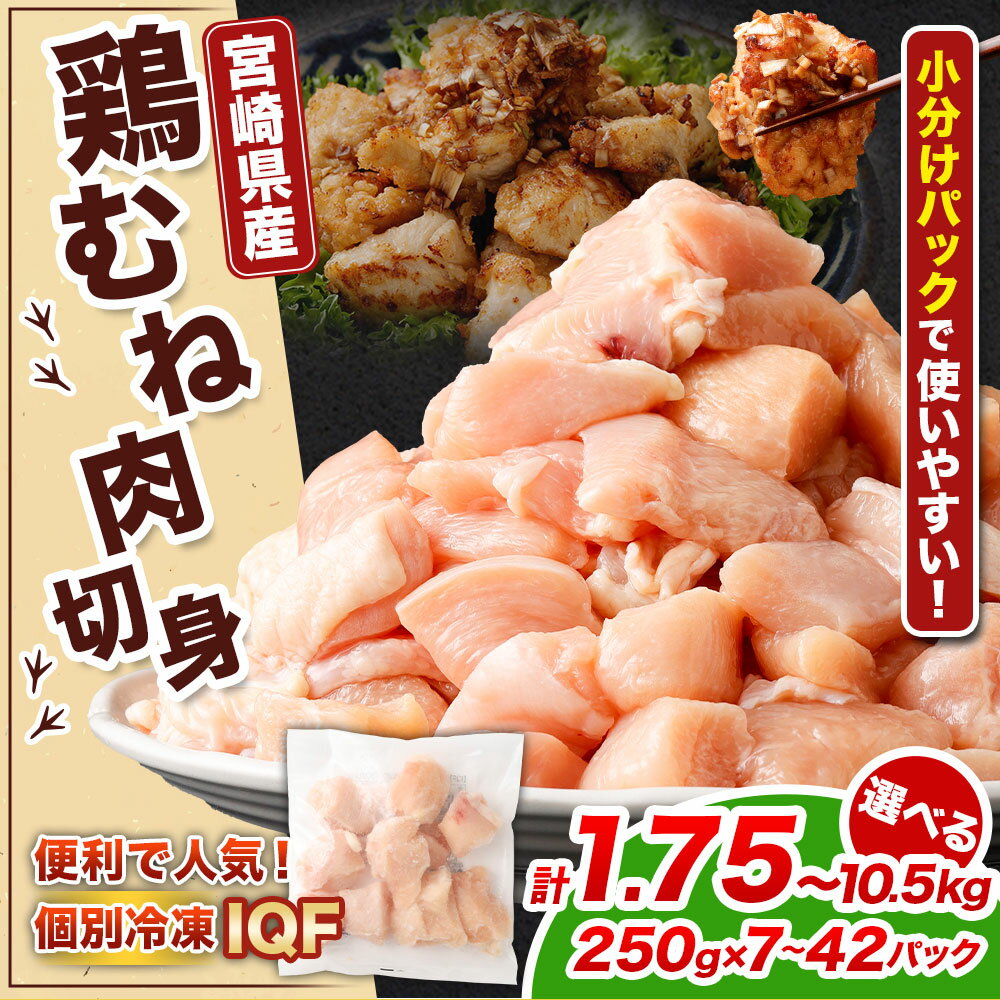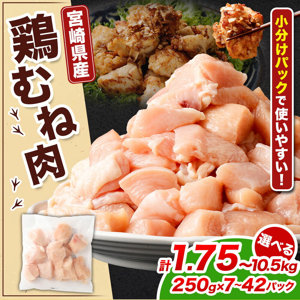 - 【ふるさと納税】【小分け】【大容量】<鶏むね肉 各250g(7パック 計1.75kg/14パック 計3.5kg/21パック 7.0kg/42パック 計10.5kg)>翌月末迄に順次出荷 鶏肉 お肉 モモ肉 ムネ肉 小分けパック 冷凍 宮崎県産 国産 九州 宮崎県 高鍋町 送料無料