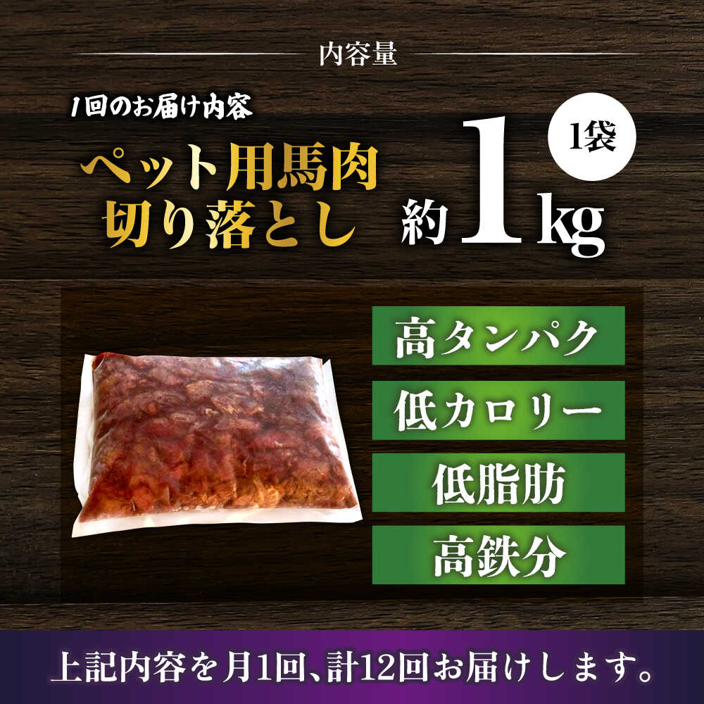 【ふるさと納税】【全12回定期便】国内加工 ペット用 馬肉 切り落とし 1kg 【合同会社 長岡フーズ】[ZFR056]
