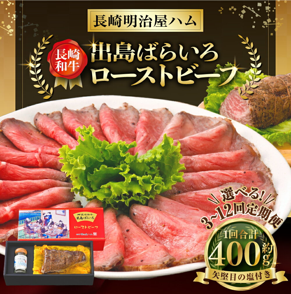 - 【ふるさと納税】定期便 長崎和牛 出島ばらいろローストビーフ 400g 選べる回数 ( 3回 / 6回 / 12回 ) | 矢堅目の塩50g付 和牛 牛肉 肉 お肉 冷凍 惣菜 お取り寄せ グルメ 国産 加工品 長崎県 長崎市 送料無料